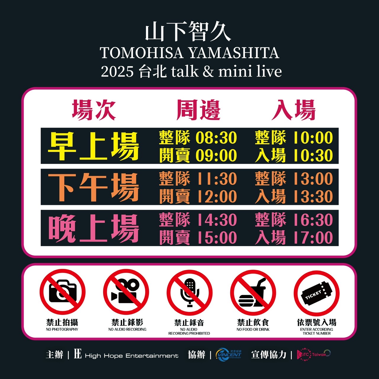 『山下智久2025 台北 talk&mini live』ご来場予定の方向けに、グッズ販売のご案内をさせていただきます。